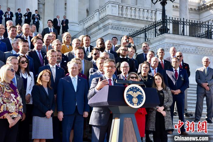 約翰遜當(dāng)選議長后在記者會上表示,過去幾周的議長選舉讓共和黨人“更強大”,“我們將立刻全力以赴開始工作”。 中新社記者 沙晗汀 攝