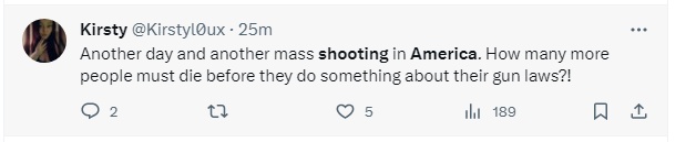 槍擊事件也引發(fā)美國網(wǎng)友熱議。他們紛紛在社交媒體X上發(fā)文譴責(zé)。