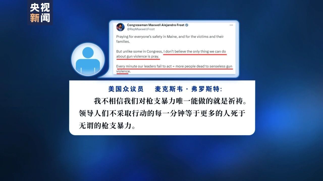 此外,每次槍擊案發(fā)生后,美國(guó)擁槍派政客都重復(fù)著空洞的安慰,這次也不例外。在多位擁槍派政客的社交媒體上,各種口頭安慰和無力的陳詞濫調(diào)比比皆是。對(duì)此,美國(guó)眾議員麥克斯韋·弗羅斯特(Maxwell Alejandro Frost)發(fā)推文寫道,“我不相信我們對(duì)槍支暴力唯一能做的就是祈禱。領(lǐng)導(dǎo)人們不采取行動(dòng)的每一分鐘等于更多的人死于無謂的槍支暴力?!?/p>