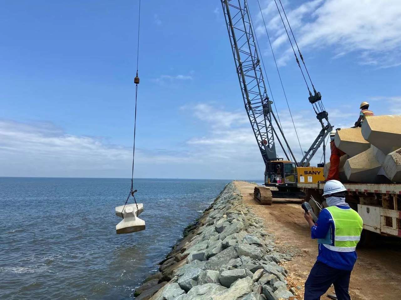 卡約新港口項(xiàng)目位于安哥拉卡賓達(dá)省,由中國(guó)進(jìn)出口銀行提供買方信貸資金,由中國(guó)路橋工程有限責(zé)任公司以EPC總承包方式實(shí)施。項(xiàng)目包括新建深水港口工程、港口設(shè)備的采購(gòu),以及與港口港區(qū)配套的自貿(mào)區(qū)及相關(guān)設(shè)施建設(shè)。港口工程的主要部分是在近岸水域新建一個(gè)離岸式700米長(zhǎng)的集裝箱和散雜貨碼頭,背后形成吹填堆場(chǎng),還包括引堤、引橋和陸域設(shè)施,形成了一個(gè)功能齊全的大型深水港口,設(shè)計(jì)年吞吐量達(dá)580萬(wàn)噸。王棟表示,卡約新港口項(xiàng)目已完成超過(guò)40%的工程,預(yù)計(jì)將于2025年年底竣工。這個(gè)項(xiàng)目不僅代表著中國(guó)企業(yè)的高水平工程實(shí)施,還體現(xiàn)了中安兩國(guó)在“一帶一路”框架下的密切合作。