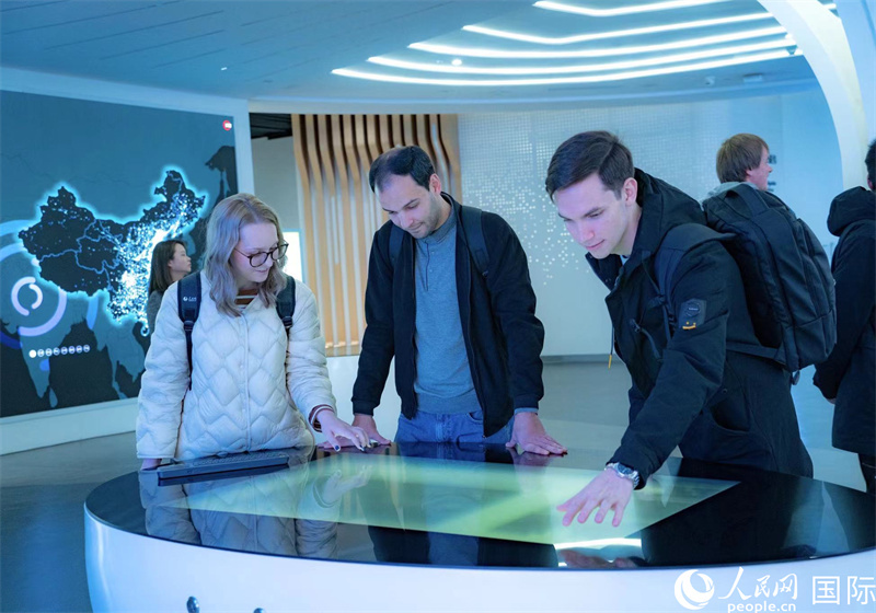 歐亞國家記者在國家大數(shù)據(jù)(貴州)綜合試驗區(qū)交流體驗中心參觀。人民網(wǎng) 陽茜攝