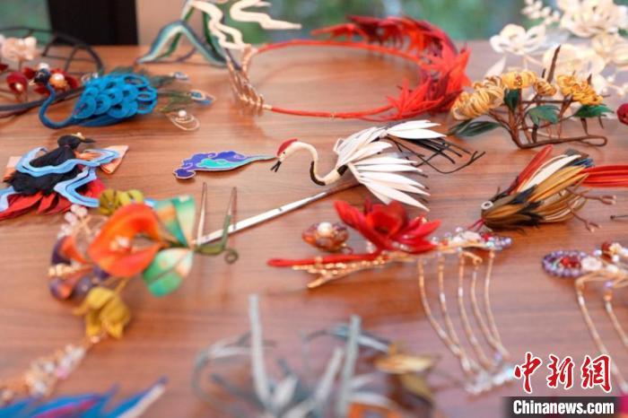 圖為活動展示的部分中國傳統發(fā)簪配飾。漢文化藝術交流中心供圖