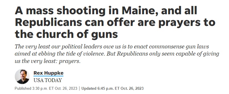 文章表示,新上任的共和黨眾議院議長邁克·約翰遜(Mike Johnson)對緬因州槍擊案作出了標準的共和黨回應(yīng),“此時此刻需要祈禱,終止罪惡,終止這種愚蠢的暴力?!?/p>