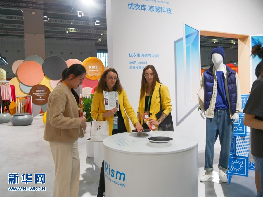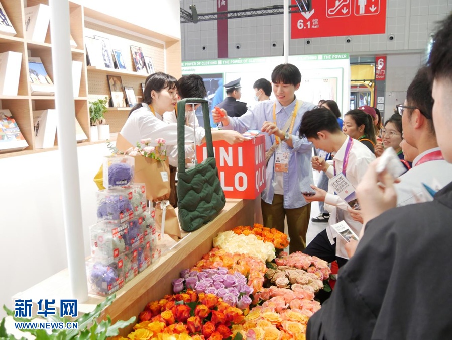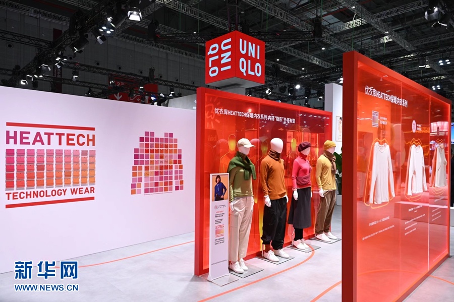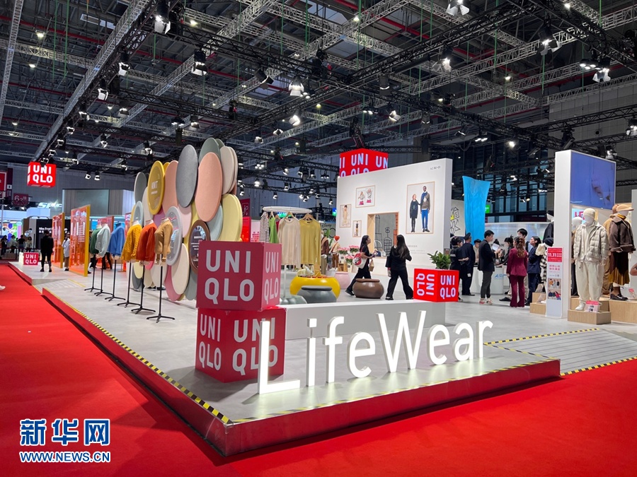 圖為5日拍攝的第六屆進(jìn)博會(huì)上的優(yōu)衣庫(kù)展臺(tái)。(新華社記者彭純攝)
