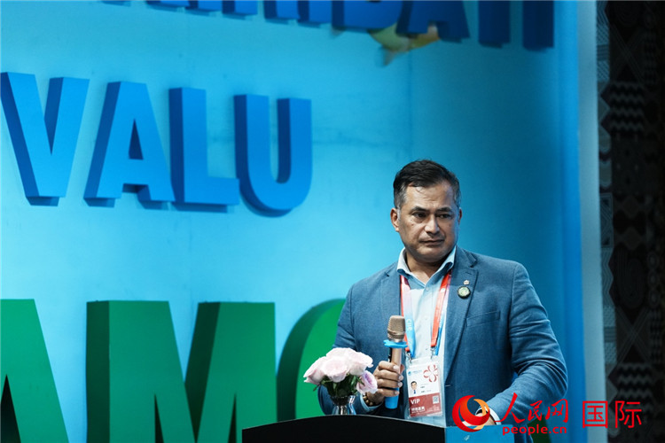 斐濟(jì)副總理代表辛格·銳迪什發(fā)表致辭。人民網(wǎng) 彭昱凱攝 |