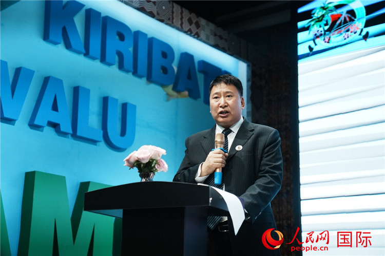南太島國(guó)聯(lián)合館館長(zhǎng)單玉強(qiáng)發(fā)表致辭。人民網(wǎng) 彭昱凱攝 |